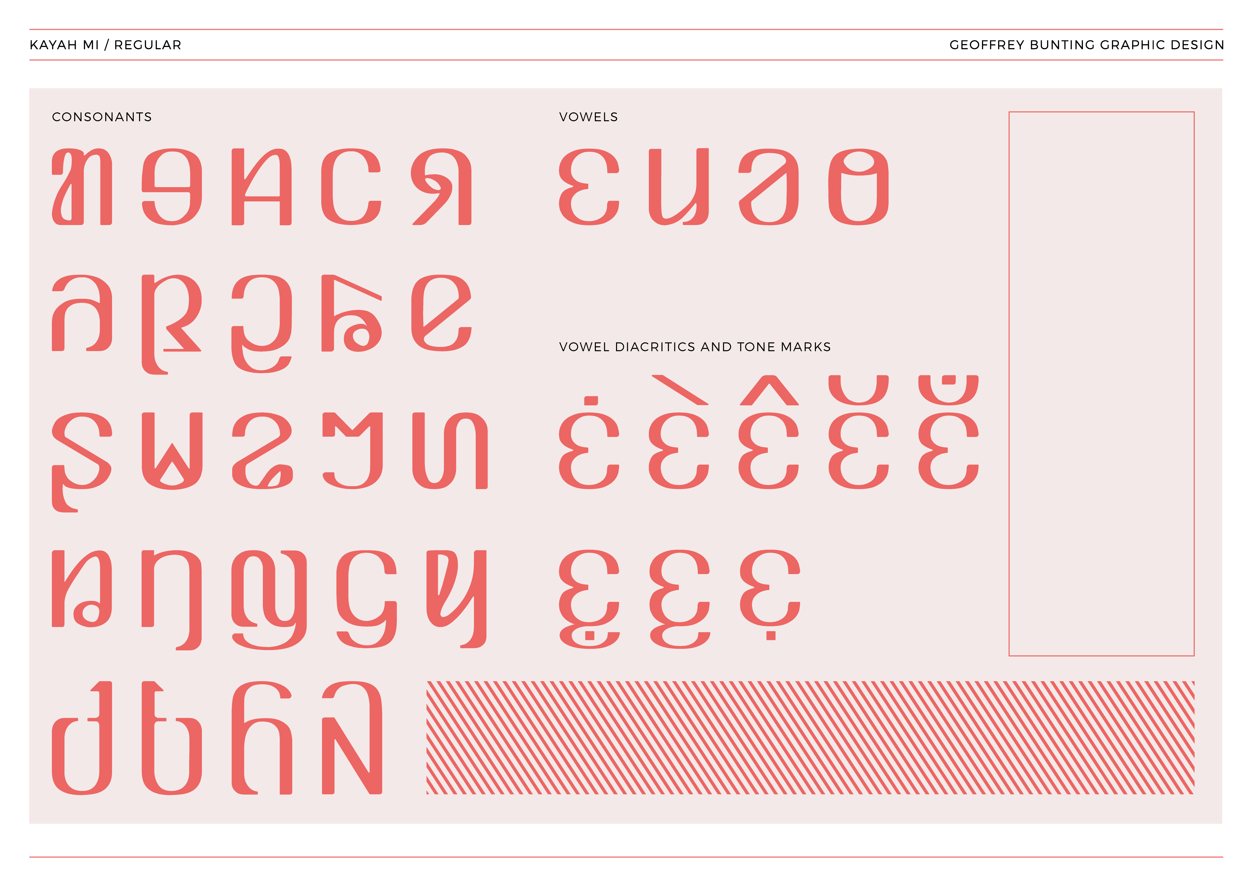 kayah mi is a new digitisation that pulls away from the typical renditions of kayah li to create a stylistic and more human typeface. originally designed using ink and brush to capture a sense of human flow, kayah mi incorporates typographic research from both east and west while conforming to the distinctive letterforms that make kayah li such a beautiful visual language.